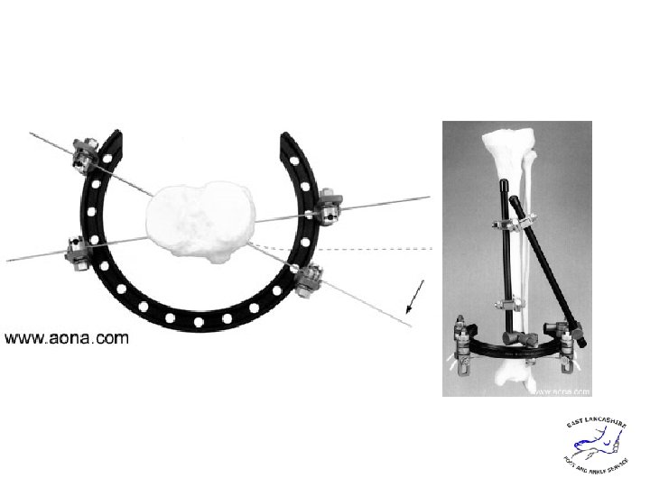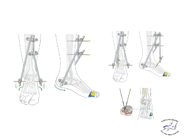 Joint spanning vs sparing • Papadokostakis 2008 (JBJS) • Systematic review • 15 articles 465 fractures • Time to union 4. 3 mths (both grps) • Malunion higher in spanning fixation. • Increased plantar flexion in hybrid vs articulated • More minor (pin site) infections in hybrids • Septic arthritis 0. 6% in hybrids