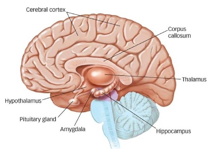 Brain Stem STRUCTURE -Extends from the base of the brain -Continues into the spinal cord, made up of the pons and medulla oblongata FUNCTION -Relays signals between the brain and spinal cord - Helps control blood pressure, heart rate, and breathing rate Brain Stem