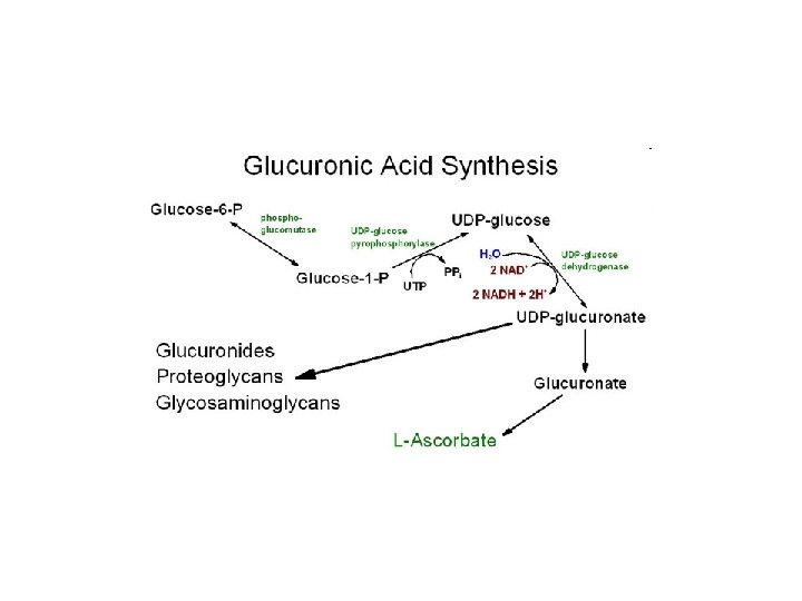 Synthesis • Then sugars are added by glycosyltransferase. • Some glycosyltransferases catalyse sugar transfer to tyrosine, serine and threonine to give O-linked glycoproteins, • or to asparagine to give N-linked glycoproteins. • Mannosyl groups may be transferred to tryptophan to generate C-manosyl tryptophan • The completed proteoglycan is then exported in secretory vesicles to the extracellular matrix of the cell.