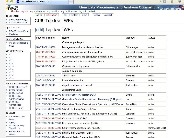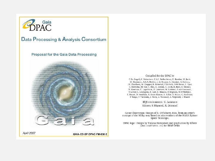 Gaia Data Processing & Analysis Consortium DPAC CUs and DPCs The Data Processing & Analysis Consortium (DPAC) organigram shows the relation of the Coordination Units (CU), the Data Processing Centres (DPC) and the DPAC Executive Committee (DPACE) (slide 8 of 54)