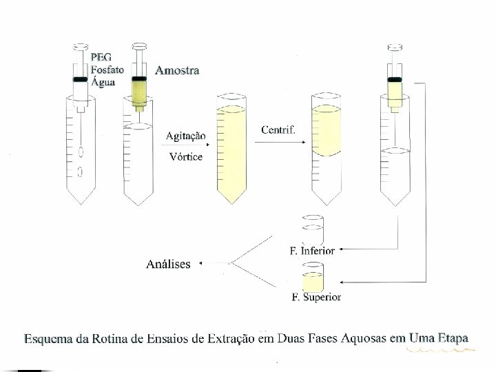 Fase aquosa superior (polimérica) Fase aquosa inferior (salina) Exemplo de separação de fases em um sistema polimérico de duas fases aquosas tipo polímero/sal (no caso PEG/fosfato).