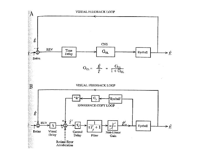 Classes of eye movements • Reflexive – gaze stabilization – VOR • Stabilize for head movements – Optokinetic • Stabilize for image motion • Voluntary – gaze shifting – Saccades • Acquire stationary target – Smooth pursuit • Acquire moving target – Vergence • Acquire target in depth