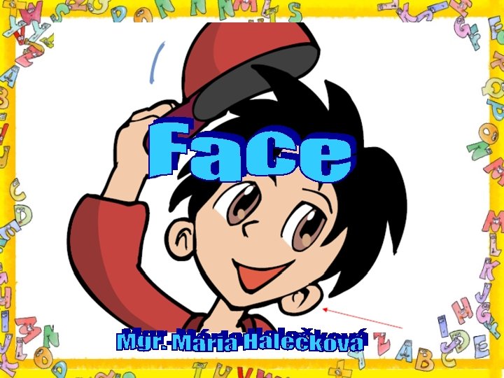 Vocabulary face /feis/ tvár neck /nek/ krk ear /ir/ ucho eyebrow /aibrau/ obočie eye dark /da: k/ tmavé /ai/ oko mouth /maus/ ústa fair /fer/ svetlé nose /nous/ nos long /long/ dlhé hair /her/ vlasy short /šo: t/ krátke teeth /tus/ zuby