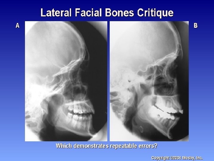 Lateral Facial Radiograph n All facial bones in with zygomatic bone in center n n Almost SI mandibular rami n SI orbital roofs (no tilt) n No rotation of sella turcica