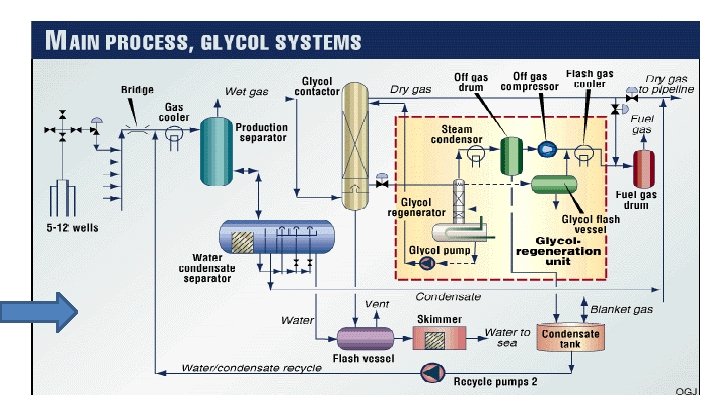 Objetivo El objetivo de tratar el gas natural es obtener productos que puedan ser utilizados o vendidos cumpliendo estándares que le permitan las normas y de las necesidades del uso (mercado). El tratamiento de gas que se ha separado de la recolección de los fluidos se lo seca primeramente con Scrubers para utilizarlo: - Combustible para generación eléctrica - Combustible para calentamiento de petróleo, …. - En levantamiento artificial Gas Lift - Para transformarlo a GLP