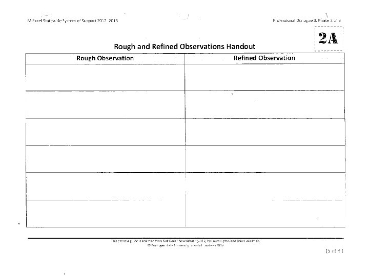 Exploring & Discovering Activity I 1. Get into groups of four or below. 2. Take 2 -3 minutes (in silence) to examine the posted data artifacts on the wall and taking note of what you notice about the artifacts. 3. Using the Rough and Refined Observation Handout, record your observations in the Rough Observation column. (List anything you observe. ) Each observation should communicate a single idea clearly and concisely and should be observable. 4. Once finished, be prepared to share with your group.