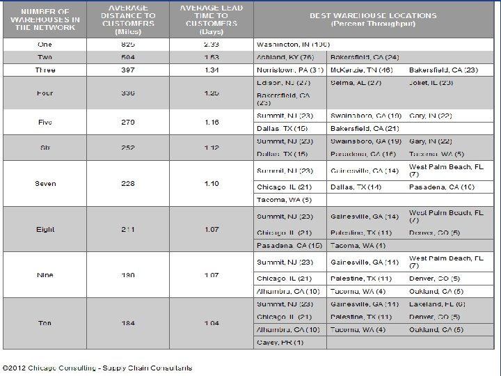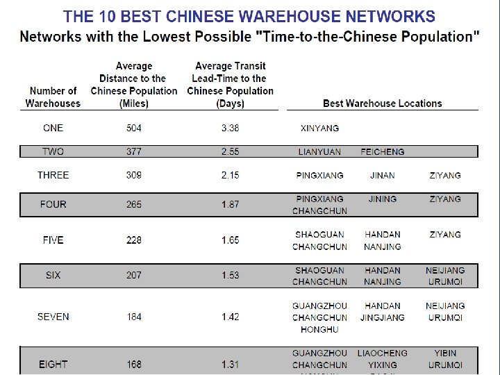 Factors in Warehouse Location ü Transportation costs ü Proximity to markets (Customers)