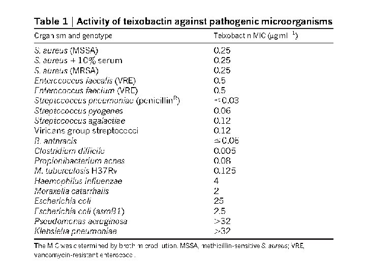 «An extract from a new species of b-proteobacteria provisionally named Eleftheria terrae showed good activity» The structure of teixobactin and the predicted biosynthetic gene cluster.