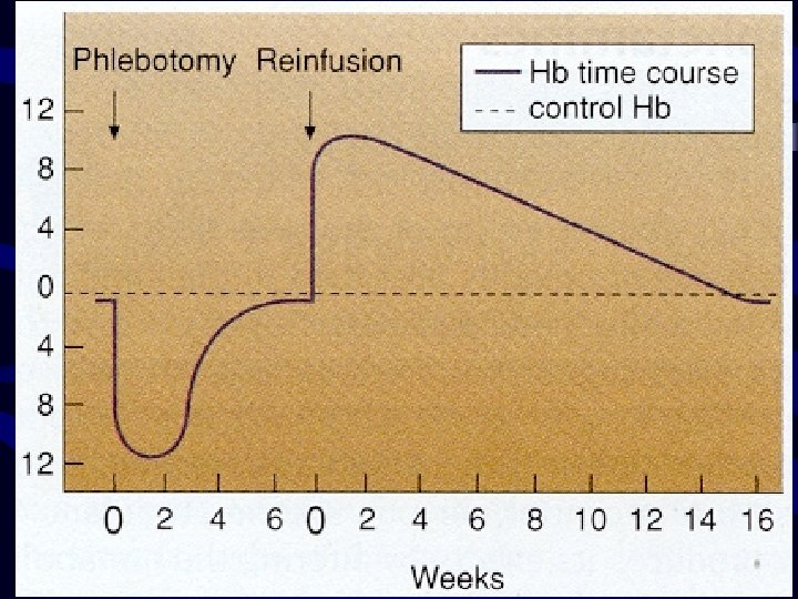 Eritropoiesi ed ipossia Ø L’eritropoiesi è controllata da un sistema a feedback molto sensibile, in cui un sensore a livello del rene percepisce le alterazioni nell’apporto di ossigeno Ø Il meccanismo si basa sulla presenza di un fattore di trascrizione (Hypoxia-inducible factor, HIF-1) eterodimerico (HIF-1α e HIF-1β) che aumenta l’espressione del gene dell’eritropoietina Ø HIF-1α è instabile in presenza di ossigeno e viene rapidamente degradato dalla prolil-idrossilasi con il contributo della proteina di von Hippel-Lindau Ø Durante ipossia la propil-idrossilasi è inattiva di conseguenza HIF-1α si accumula attivando l’espressione dell’eritropoietina che stimola la rapida espansione dei progenitori eritroidi