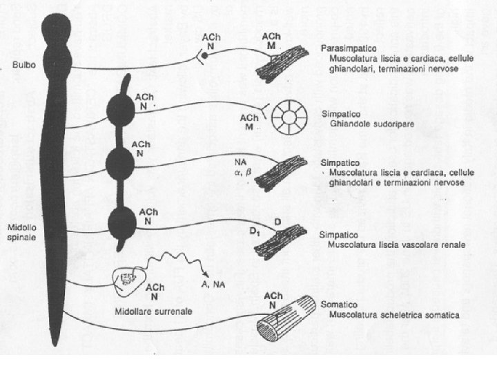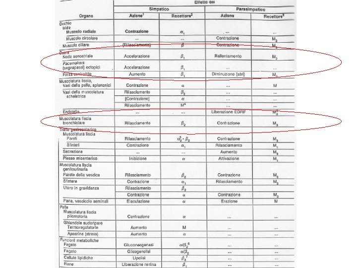 recettori (vasi sanguigni) ß 1 recettori (cuore) Adrenalina Alfa agonista (es. clonidina) Antagonista ß-1 (es. atenololo) Adrenalina Agonista ß 1 (es. dobutamina) Antagonista ß (es. propranololo) ß 2 recettori – (bronchi) Antagonista ß (es. propranololo) Adrenalina Agonista ß 2 (es. salbutamolo) Adrenalina
