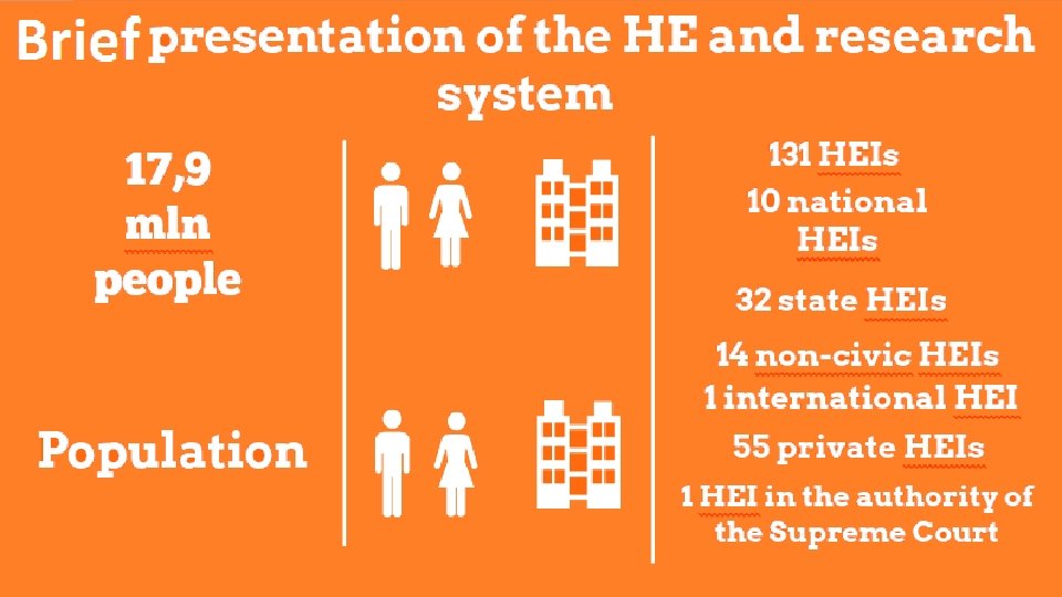 Changes in the number of HEIs in Kazakhstan* 153 101 55 166 182 175 176 140 145 149 126 128 131 63 1991 1993 1995 1997 1999 2001 2003 2005 2007 2009 2011 2014 2016 2017 * Source : Mo. ES RK
