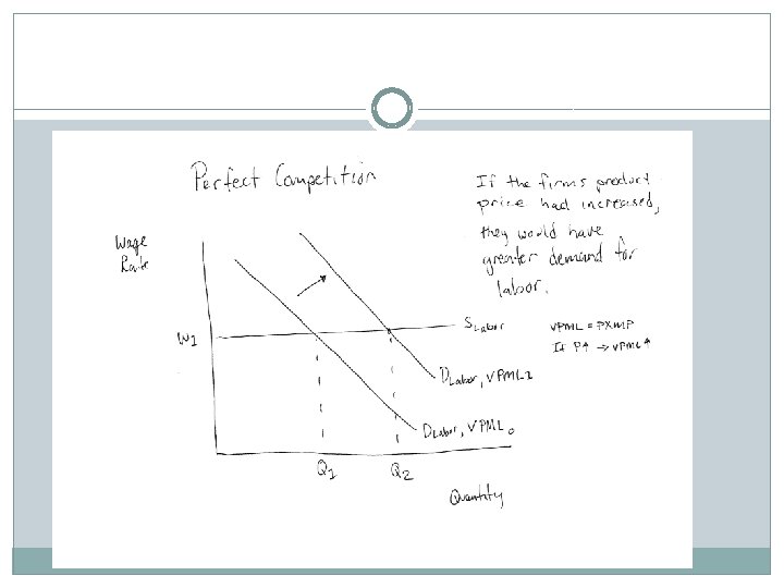Imperfect Comp: Demand for labor would be smaller. �Since MR < P, �MRPl< VMPl �At any wage, perf Comp would demand Larger quantity labor
