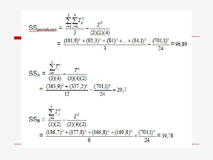 Perhitungan Tabel Anova SSA = SSB = SSAB =