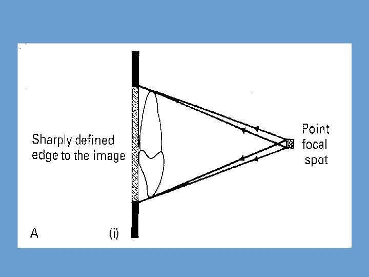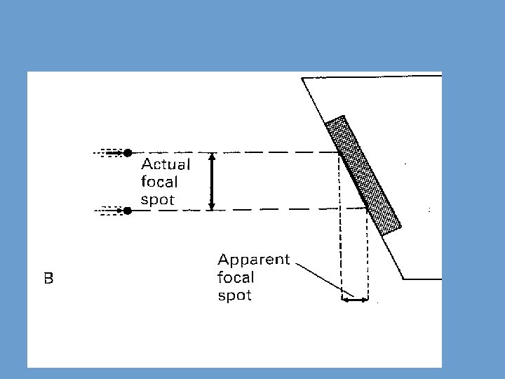 Focal spot size, heat distribution and image sharpness n n n Focal spot 1 mm Heat needs to be distributed over as large as possible area Principle of line focus