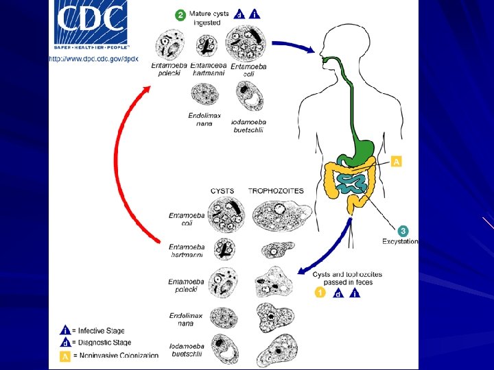 Entamoebas Morfologia: Depende da espécie – Cisto: 7 a 22 mm Ø – Trofozoíto: 20 a 40 mm comprimento http: //www. dpd. cdc. gov/dpdx/HTML/Image. Library/Amebiasis_il. htm