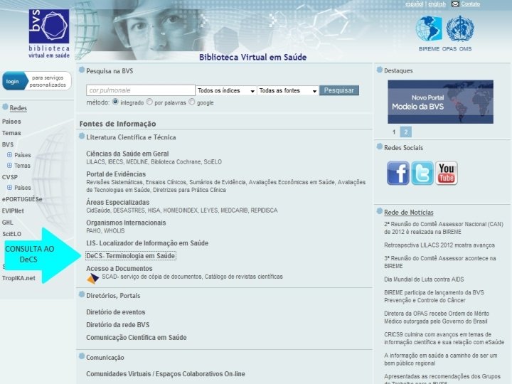 Biblioteca Virtual em Saúde BVS ou BIREME Site oficial de pesquisa em saúde na internet no Brasil: http: //www. bireme. br http: //www. bvs. br