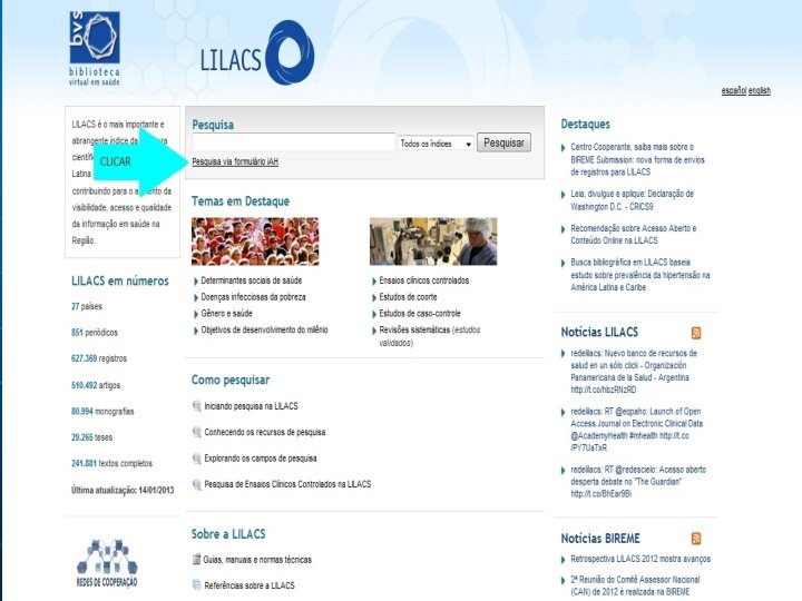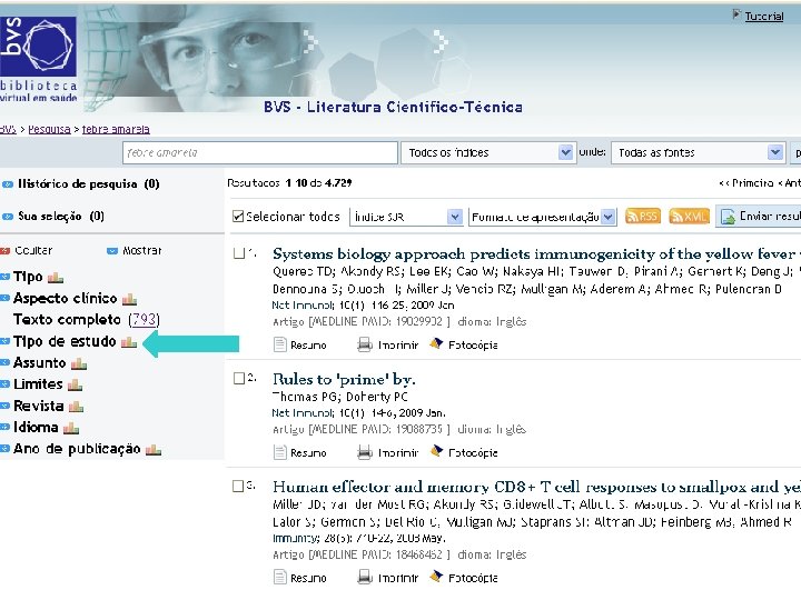 Demonstração de pesquisa na BVS