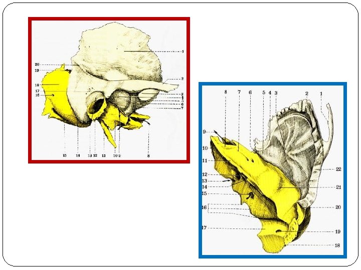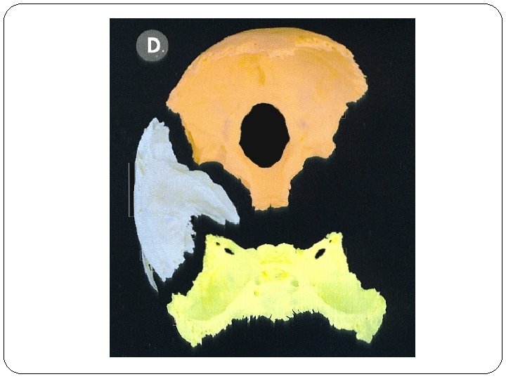 DESARROLLO Parte superior: esbozo membranoso Parte inferior: esbozo cartilaginoso con puntos de osificación • Basoocipital • Exoccipital • Supraoccipital • interparietal