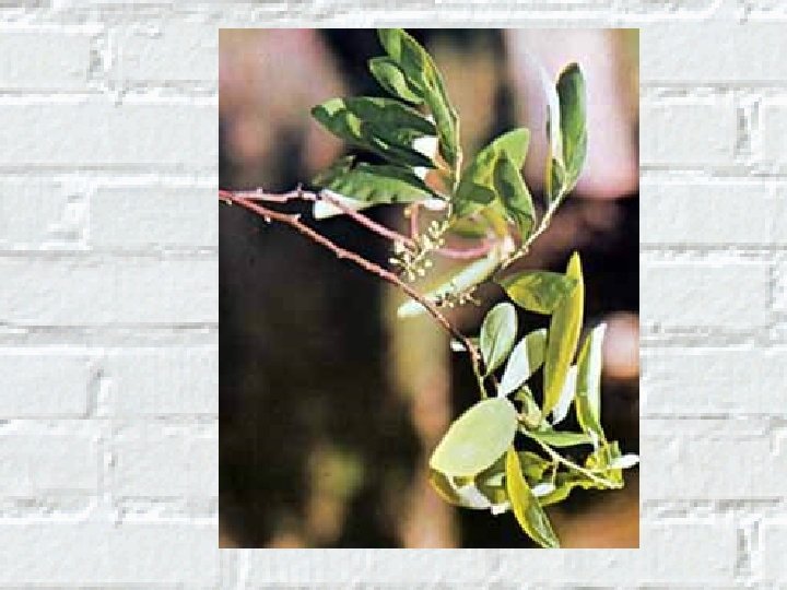 Descripción • Obtención: se obtiene a partir de la hoja de coca (Erythroxylon coca lam y Erythroxylon novogranatense) que es originaria de Perú y Bolivia. • El principio activo (metilester de benzoilecgonina) fue aislado por primera vez por el químico alemán Niemann.