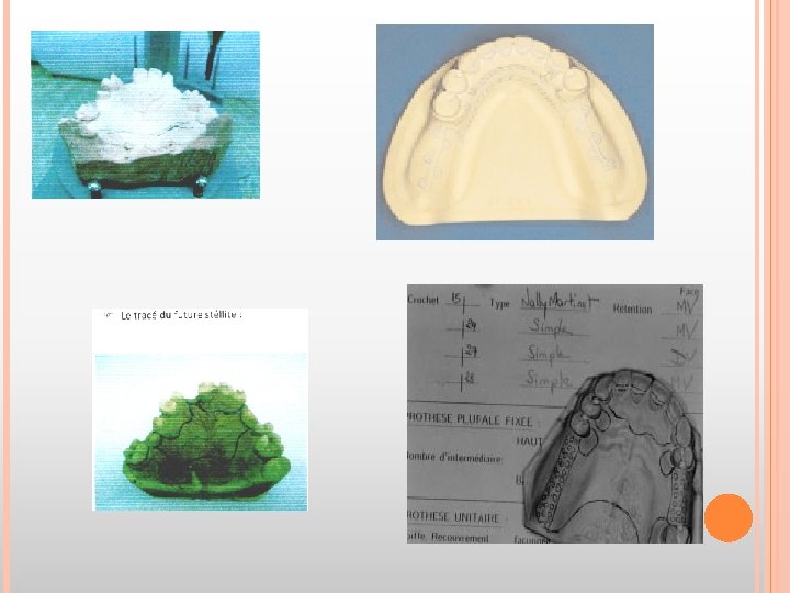 2/TRACÉ DE LA PROTHÈSE ET TRANSFERT DES MOULAGES AU LABORATOIRE Le tracé est inscrit au crayon sur le modèle par le praticien avant que celuici ne soit transmis au laboratoire. Le paralléliseur permet de mettre en évidence l’axe d’insertion
