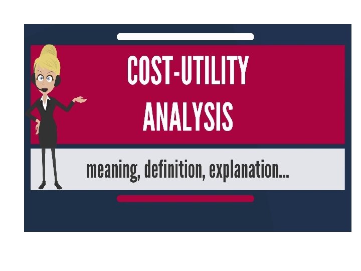 Cost utility analysis � Utility is the value or worth of a level of health as measured by the preferences of an individual or society. Cost-utility analysis is one form of costeffectiveness analysis, which allows the comparison of different health outcomes by measuring them all in terms of a single unit(QALY) (Maurice Mc. Gregor). It weighs costs and quality adjusted health outcome of each intervention in order to take the decision for the program to be implemented.