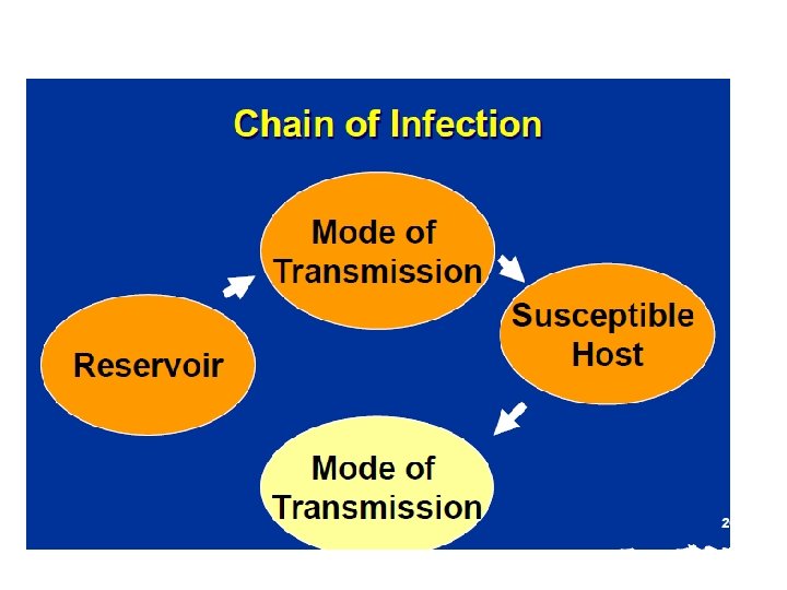 Reservoir • Habitat in which the disease normally lives and multiplies • • People -Symptomatic - Smallpox -Asymptomatic - HIV • • Animals (Zoonoses) -Brucellosis -Plague • • Environmental -Histoplasmosis -Legionnaires’ bacillus