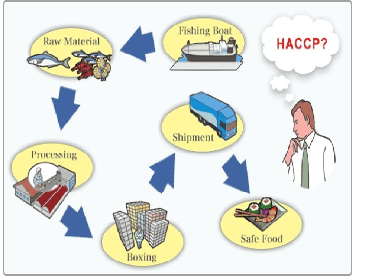 The HACCP ä It is the system that is required for any food business or organisation in most countries. ä The joint FAO / WHO Codex Alimentarius Commission recommends the HACCP approach to enhance Food Safety in all process of food production. äThe goal of HACCP is to prevent and/or minimize risks associated with biological, chemical, and physical hazards to acceptable levels