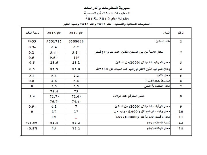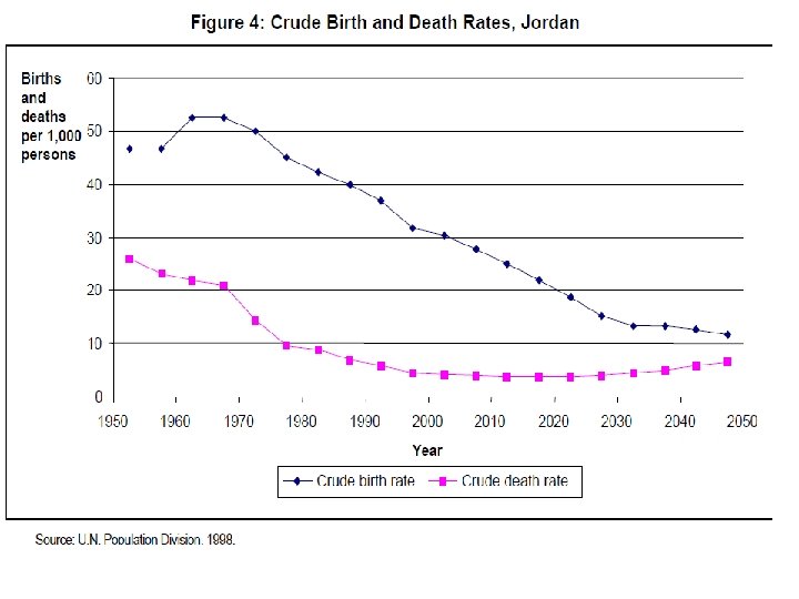 Other terms Mortality rates - number of deaths per thousand people. It is 6. 1 in Jordan. 8. 37 per 1, 000 for the world and U. S. 23. 74 in Angola. Birth rates – number of births per 1, 000 people per year. In Jordan 28. 6. 13. 83 in US, 51. 08 in Niger. Growth rate – percent change in population over time. growth rate = birth rate — death rate + net immigration rate ÷ 1, 000 Dependency ratio – comparison of working age with those who don’t work (in Jordan 61. 4) Formula: People 65 and over + children 14 and Under ÷ people who work × 100 Migration rate – Immigrants – emigrants ÷ 1, 000. US is 4. 25; United Arab Emirates is 21. 71 Life expectancy – number of years a person is expected to live. In Jordan 74. the US is ranked 36 th at 78. 3. Japan is 1 st at 82. 6. Swaziland is last at 31. 88