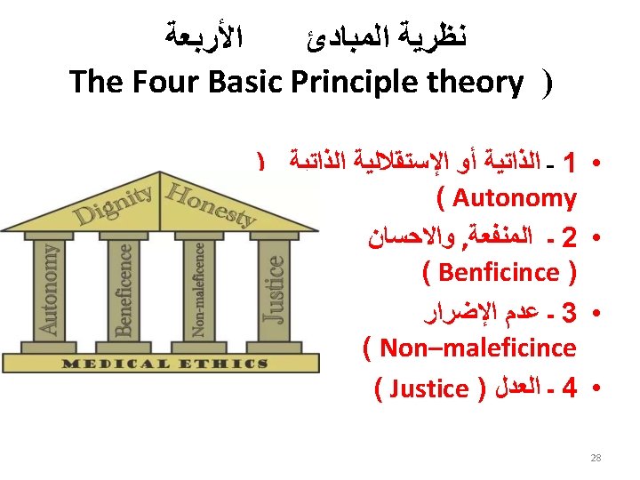 Presentation outline 16 -7 -2019 Time Introduction to Ethics in Medicine 10: 00 to 10: 20 Types of Ethics, The principles In Medical Ethics 10: 20 to 10: 35 DUTIES OF MEDICAL PRACTITIONERS 10: 35 to 10: 50 Medical Law & Ethics 11: 00 to 11: 25 ﻗﺎﻧﻮﻥ ﺍﻟﻤﺴﺆﻮﻟﻴﺔ ﺍﻟﻄﺒﻴﺔ 11: 25 to 11: 50 2