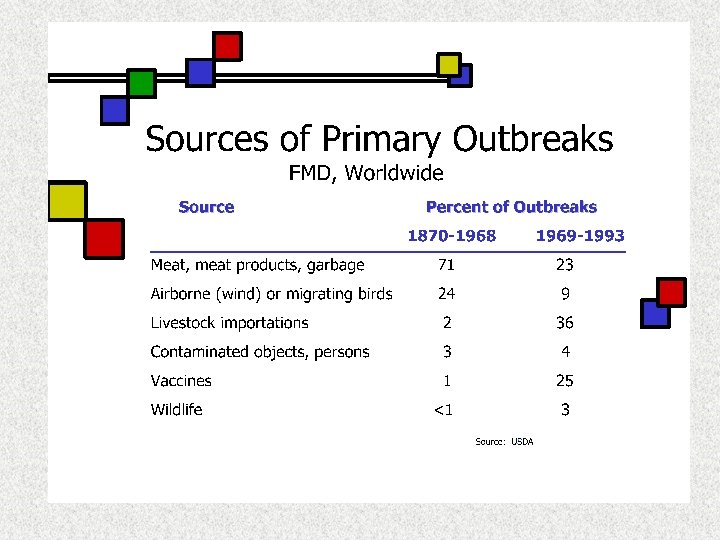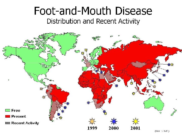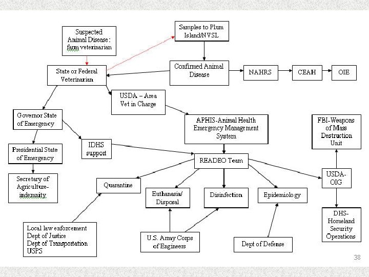 Some recent cases • Screwworm, Sept 2007, Mississippi • Avian Influenza HPAI, 2004 - H 5 N 2 Texas, H 7 N 3 British Columbia • Exotic Newcastle Disease 2003 – California, Texas • BSE, 2003 - 2007 – imported and US bred cattle • Monkey Pox, multi-state, June 2003 • Bluetongue – Montana, Wyoming 2007