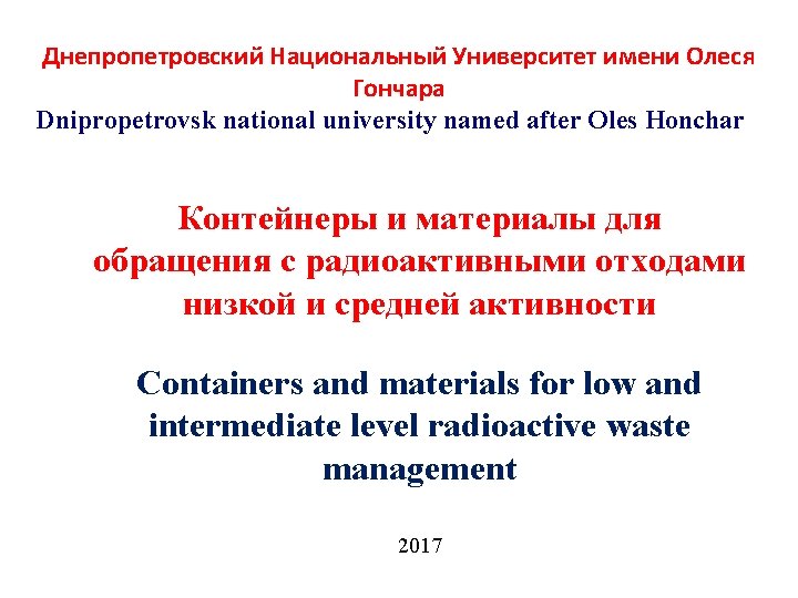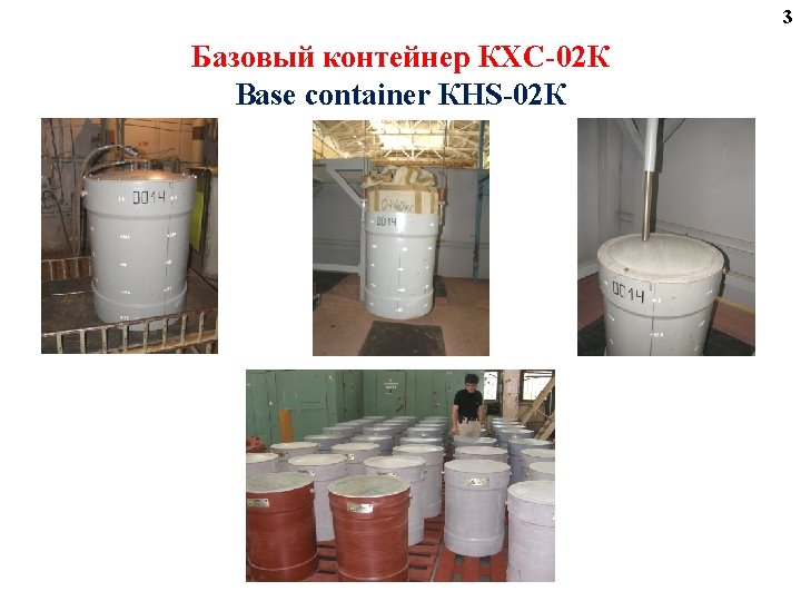 Разрушение стальных и бетонных контейнеров Failure of steel and concrete containers Выщелачивание бетонного контейнера грунтовыми водами Failure concrete container due to leaching by underground waters Коррозионное разрушение стальных контейнеров Failure of steel containers due to corrosion INTERNATIONAL ATOMIC ENERGY AGENCY, Upgrading of near surface repositories for radioactive waste, Technical report series 433. – IAEA, 2005. – 137 p. 2