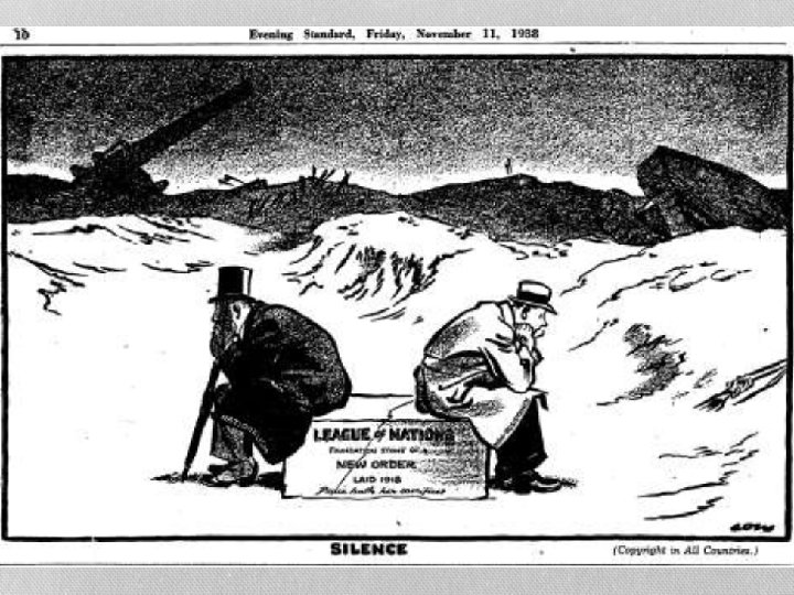 Why Did Collective Security Fail in the 1930 s? • League had collapsed by 1939 • Depression after October 1929 • World’s economy had been linked to USA • Return to a world of self-interest and military forces • Governments found right-wing political groups difficult to restrict • Heightened fears of the USSR • Expansionism growing in Europe and Asia • Economic sanctions now not an option for the League • Return to old-style diplomacy, outside of the League