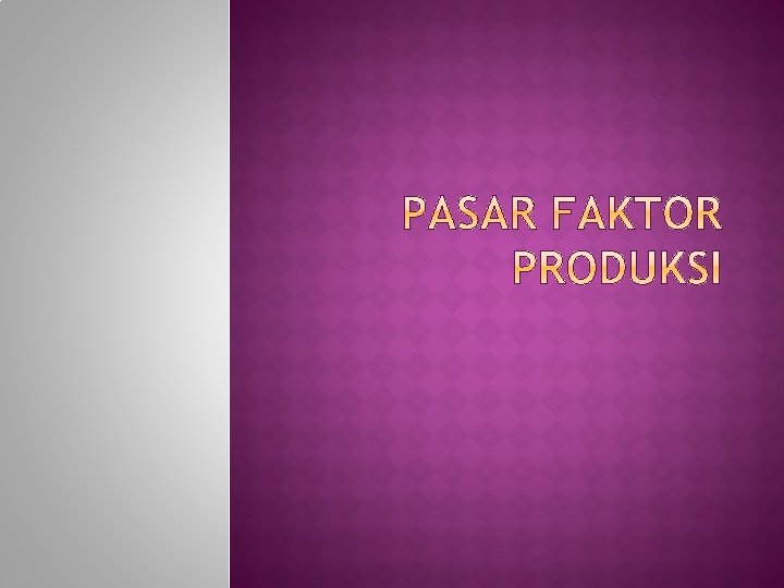 Faktor produksi adalah input yang digunakan dalam memproduksi