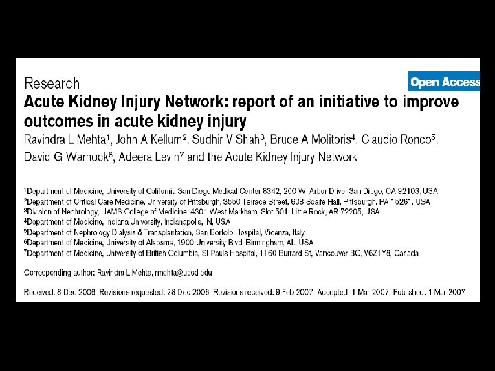 ¿COMO SE INTERPRETA? – Injuria renal aguda = 35 -67% paciente UCI – 17% R ----- Mortalidad 20% – 11% I ----- Mortalidad 45% – 8% F ----- Mortalidad 56% – No injuria renal aguda = Mortalidad 5. 5 -8. 4% • Compromiso renal es factor independiente de mortalidad en UCI Ostermann M, Chang RW: Acute kidney injury in the intensive care unit according to RIFLE. Crit Care Med 2007; 35: 1837– 1843