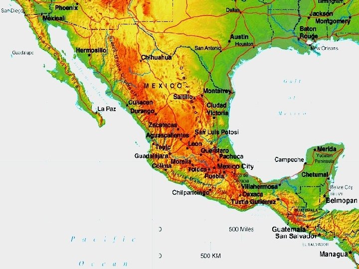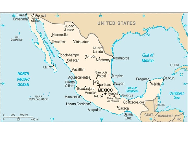 The Mexican United States • • 31 states + the Federal District Area: 1, 958, 200 sq km or 756, 065 sq miles Population 106 million Capital city Mexico, population 20 million – the biggest city in the world 90% catholic Patron Saint Our Lady of Guadalupe since 1531 St. Prisca Cathedral in Taxco