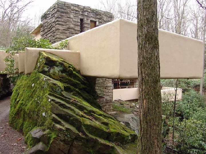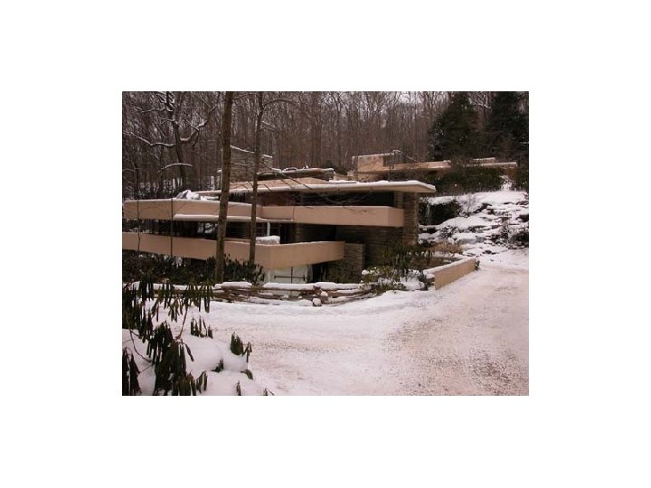 1. - Dades bàsiques • Nom: Casa Kaufmann (Casa de la Cascada. Falling Water House) • Arquitecte: Frank Lloyd Wright • Cronologia: 1935 -1937. • Estil: Organicisme • Tipus: habitatge unifamiliar exempt • Ubicació: Bear Run (Pensilvànnia. EUA)