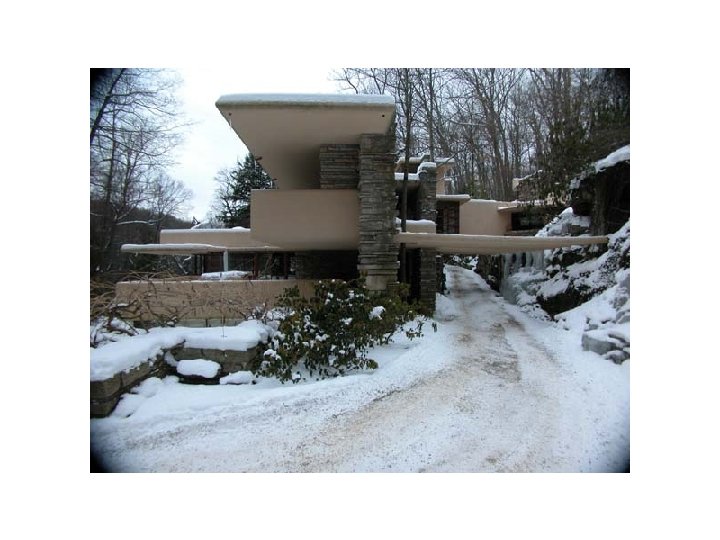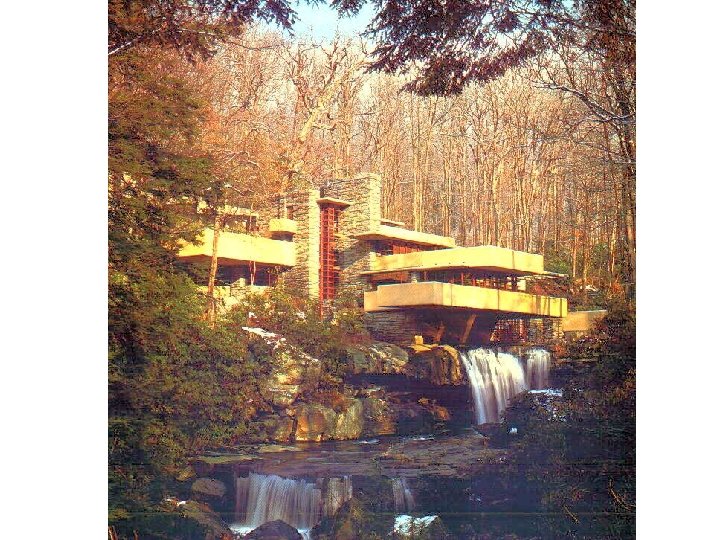 Elements propis de l’estil • Wright va ser un arquitecte lliure que aplicà uns principis bàsics a la seva obra, l’arquitectura orgànica. • Principis: – Harmonització i integració en el paisatge – Aixecament dels soterranis per considerar-los insalubres – Ornamentació sòbria, basada únicament en el valor de les textures dels materials que serveixen de recobriment. – Concepció volumètrica dels voladissos de formigó que utilitzà des d’un primer moment.