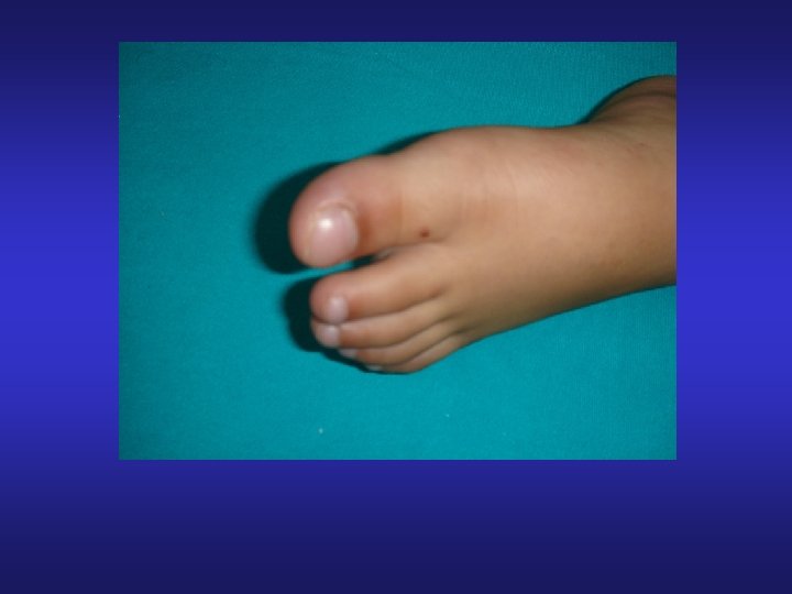 TOF Klinik Bulgular Fizik muayene • Siyanoz, taşipne, çomaklaşma • Oskültasyonda S 2 tek çünkü sadece aortik komponenti duyulabilir. • Sternumun sol kenarı üst-orta kısmında sistolik ejeksiyon üfürümü duyulur, bu pulmoner stenoz üfürümü holosistolik VSD üfürümü ile karışabilir.