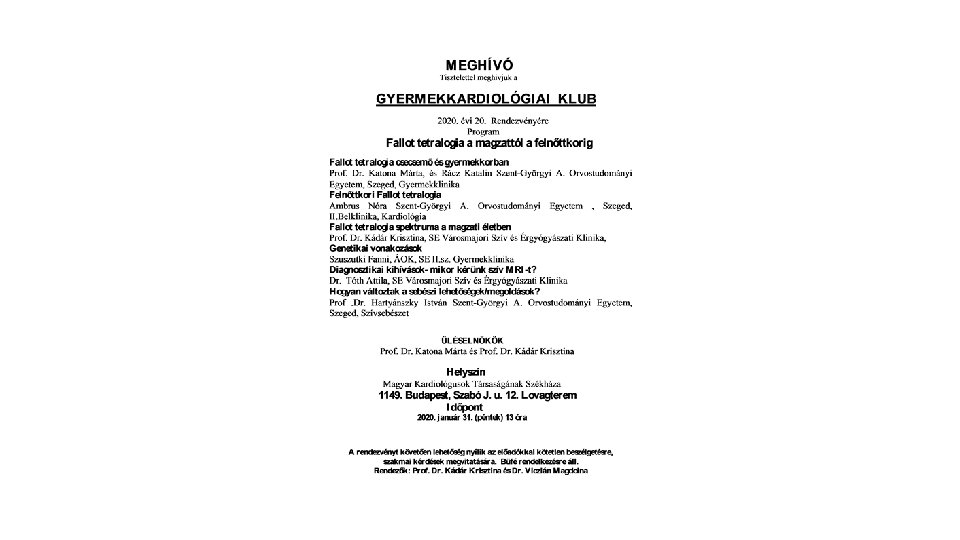 Fallot-tetralogia csecsemő és gyermekkorban Rácz Katalin, Katona Márta, Hartyánszky István, Bogáts Gábor SZTE Gyermekgyógyászati Klinika és Gyermek Egészségügyi Központ SZTE II. Belgyógyászati Klinika és Kardiológiai Központ Szívsebészeti Osztály Szeged Gyermekkardiológiai klub, Budapest 2020. 01. 31.