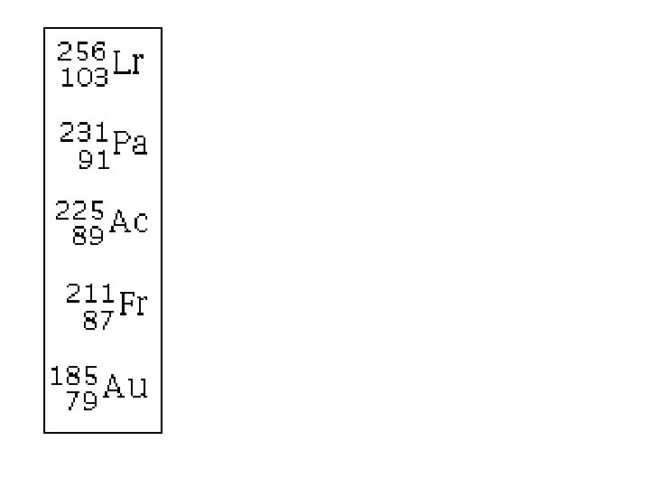 alpha 4 2 Beta (electron) 0 -1 beta-plus (positron) neutron He e 0 e +1 1 0 n continued
