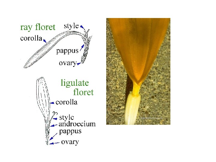 Morphological Features • • • Root: Usually tap roots but root tubers also found Stem: Erect or prostate, rarely climbing, some time woody Leaf: Simple some time compound Flower: Inflorescence head or capitulate Two types- Ray floret and disc floret Ray floret-Present in the perifery, zygomorphic, ligulate, unisexual female flowers • Disc floret: Central position, bisexual, actinomorphic • Calyx: Modified into papus or scale leaf • Corolla: Petal 5 or three tubular in disc florets or ligulate in ray florets, gamopetalous, aestivation valvate.