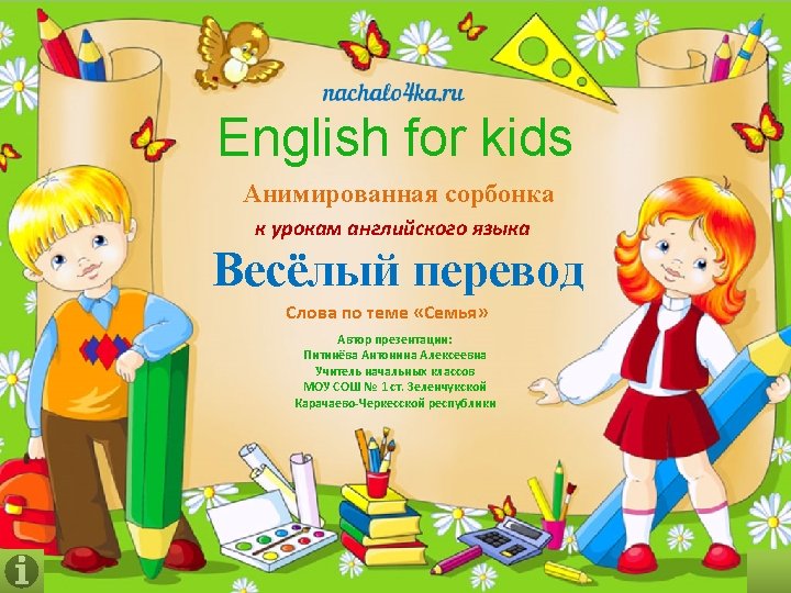 family children Pro Power Point Ru mother father Slides: 11 Download presentation Переведи слово семья family children дети Pro. Power. Point. Ru Переведи слово mother мама father папа Pro. Power. Point. Ru Переведи слово сестра sister brother брат Pro. Power. Point. Ru Переведи слово auntie тётя uncle дядя Pro. Power. Point. Ru Переведи слово grandmother бабушка grandfather дедушка Pro. Power. Point. Ru Переведи слово daughter дочь сын son Pro. Power. Point. Ru Молодец! Pro. Power. Point. Ru Использованные материалы: Шаблон для презентации: http: //propowerpoint. ru/detskij-shkolnyj-shablon-dlya-prezentacij/ Инструкция «Анимированная сорбонка» http: //goldinamyclas. ucoz. ru/load/metodicheskie_razrabotki/master_klass_quot_animirovannaja_sorbonka_quot /27 Pro. Power. Point. Ru