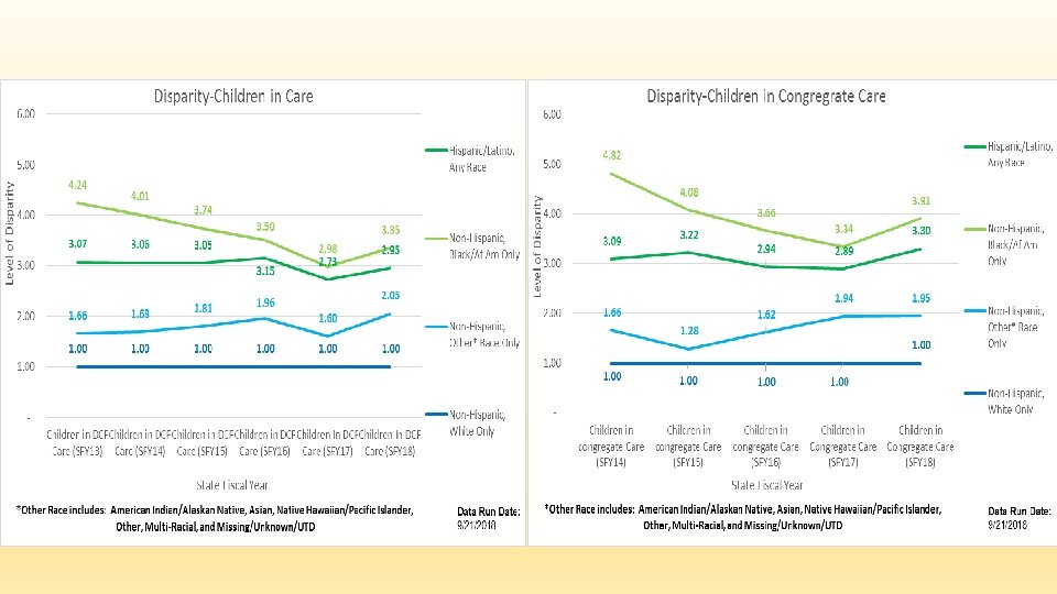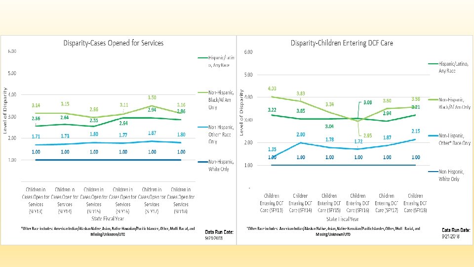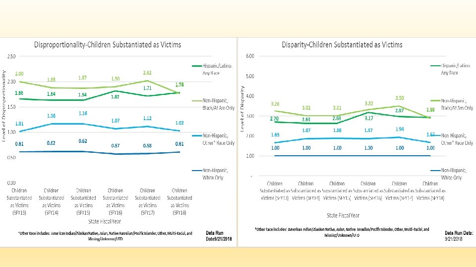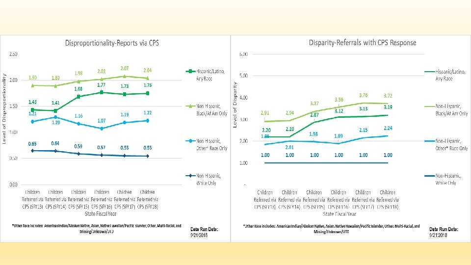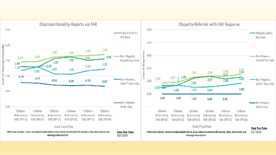 Note: Lesser levels of disproportionality in FAR vs. Investigations is likely indicative of disparity in case practice given the population served in FAR; hence not a desirable outcome.