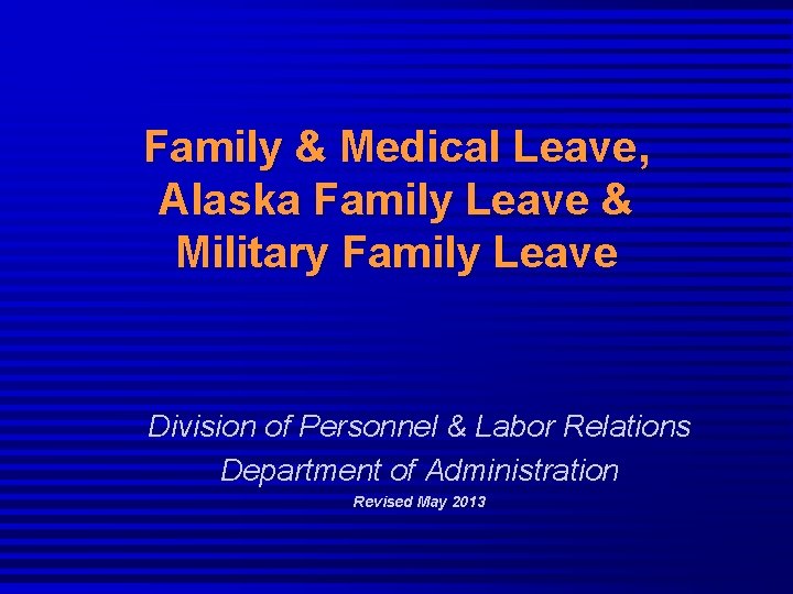 Family & Medical Leave, Alaska Family Leave & Military Family Leave Division of Personnel & Labor Relations Department of Administration Revised May 2013
