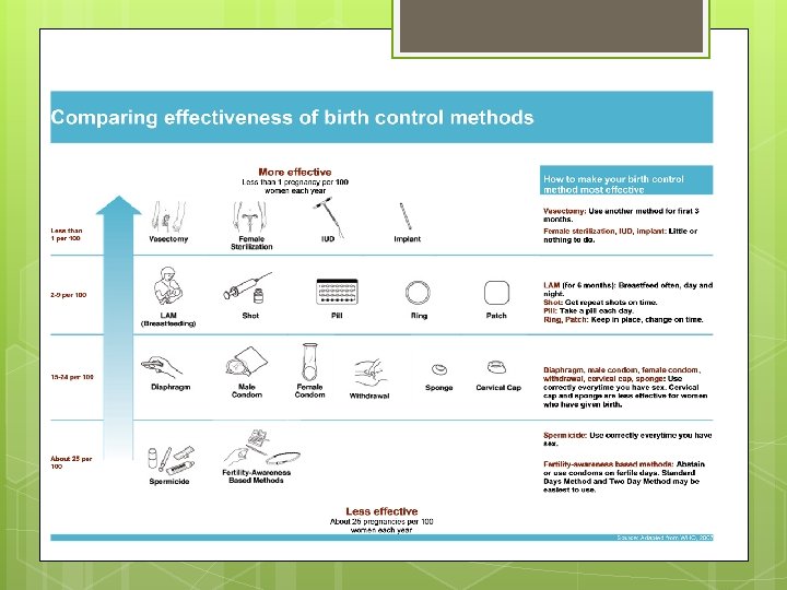 Advantage • • � � � Highly effective when taken correctly; 92 - 99. 9%. Reversible, easy to use and safe for most women Client controlled Does not interfere with sexual intercourse Widely available and accessible Non contraceptive Benefits � Reduce the risk of: � - benign breast disease � - ovarian & endometrial � cancer