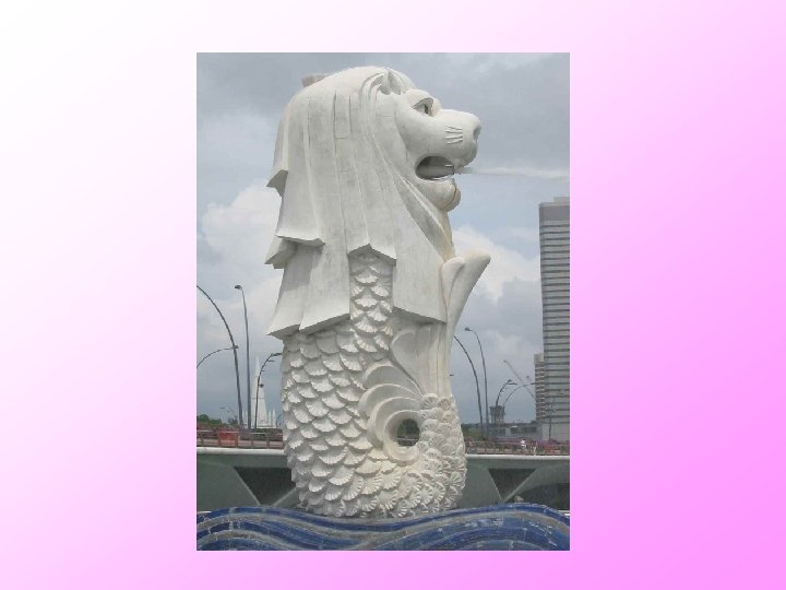 Merlion • The Merlion is found in Singapore • It has the head of a lion on the body of a fish and is a national symbol of Singapore.