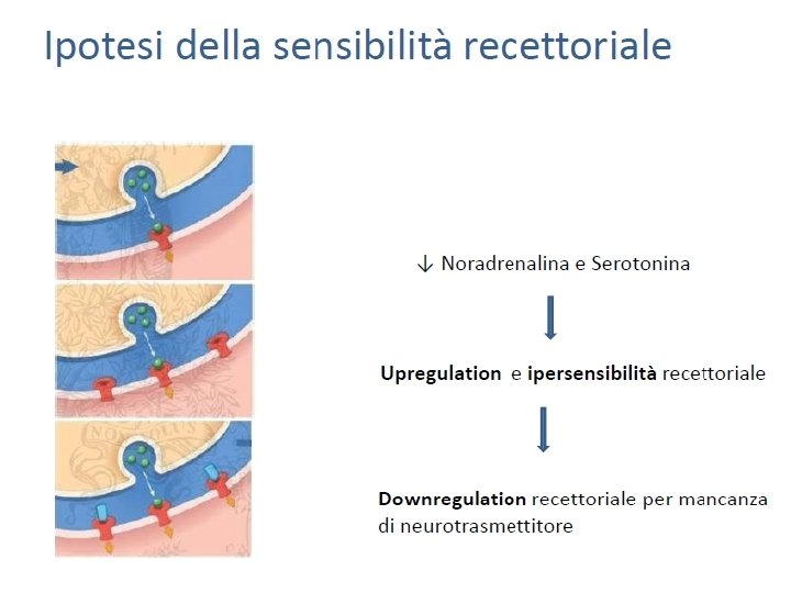 Dinamica temporale degli effetti degli antidepressivi 8 6 Settimane di trattamento con antidepressivi 4 2 0 Effetti sinaptici ore - giorni Effetti collaterali ore - giorni Effetti terapeutici 4 - 6 settimane