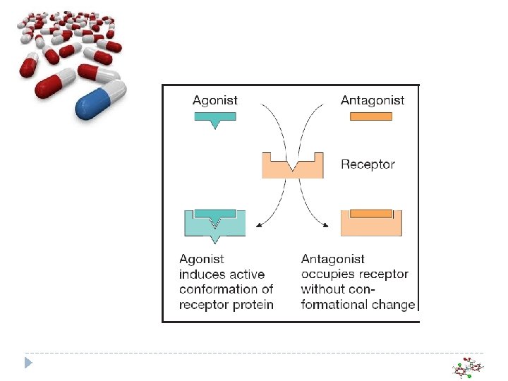 FARMACO AGONISTA ü Es aquel que posee afinidad por el receptor y eficacia. Los efectos inducidos por estos fármacos reproducen las respuestas fisiológicas mediadas por el receptor La intensidad de fármaco = el grado de eficacia La potencia del fármaco = la cantidad necesaria para conseguir un efecto (relacionado con la afinidad del receptor) FÁRMACO AGONISTA PARCIAL Posee afinidad por el receptor pero menor eficacia que el agonista