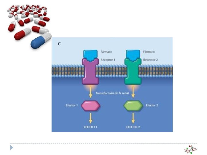 Parte de la farmacología que se encarga del estudio del mecanismo de acción de los fármacos ca cia Efi RECEPTORES: ü macromoléculas celulares encargadas de la señalización química entre y dentro de las células ü Presentes en la membrana, el citoplasma o el núcleo ü Debe presentar afinidad por el fármaco y especificidad o e l b ible i s er ers v Re rev No RESPUESTAS: ü Modificaciones en el flujo de iones ü Cambios en la actividad enzimática ü Modificaciones en la producción y/o la estructura de determinadas proteínas