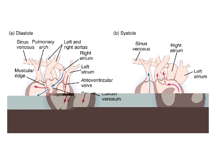 Regulation of Heart Rate – Primarily accomplished by sinoatrial node (SA) • Located on right atrium • Receives autonomic input • When stimulated, SA signals atrial contractile fibers atria depolarization and contraction (primes ventricles with blood) – Depolarization picked up by atrioventricular node (AV node) depolarizes ventricles blood discharged to pulmonary artery and dorsal aorta eventually rest of body